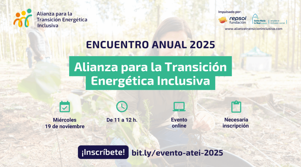 La Alianza para la Transición Energética Inclusiva (ATEI) ha organizado un evento online para presentar los resultados de sus actividades de 2025. Se celebrará el próximo 19 de noviembre, de 11 a 12 horas. Será un espacio para dar a conocer las actividades realizadas este año. Un encuentro abierto y participativo, pensado para visibilizar los avances del ecosistema de innovación social.